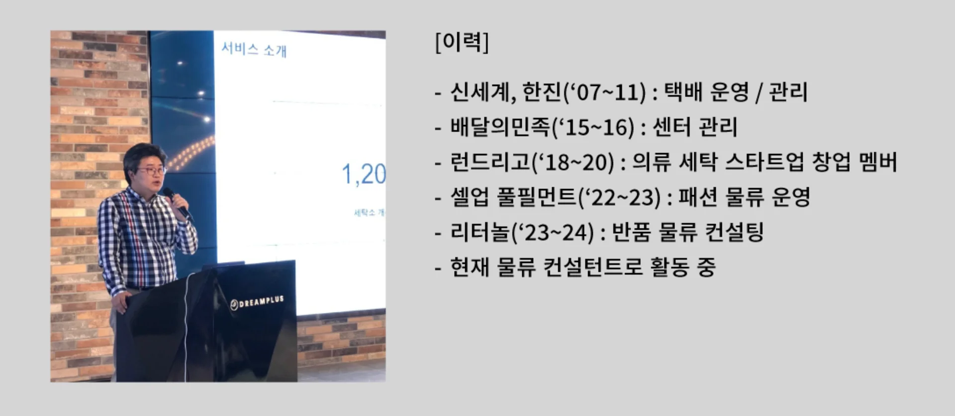 그리고 대기업 물류까지 경험한 전문가가
